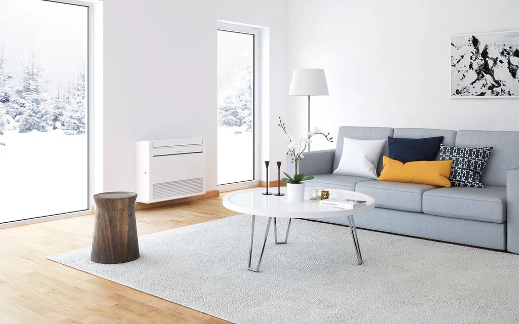 Vår golvplacerade luftvärmepump med Hyper Heating-funktion. Inomhusenhetens kompakta format gör den ytterst lättplacerad. Samtidigt är det en av marknadens mest effektiva värmepumpar med en kapacitet som överträffar de flesta. DOJO smälter diskret in i den omgivande miljön, samtidigt som den på bästa sätt fördelar värme jämnt i din bostad med utblås både mot golv och tak.